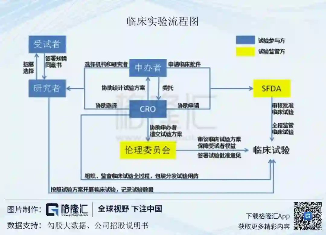 逻辑关系是这样的:对于准备新药上市的药企来说,临床试验(临床研究的目的是通过对新药进行广泛的人体试验,评估其对疾病治疗的有效性以及对人体的安全影响)是一个必不可少的环节。而临床试验则离不开CRO企业的全程组织与服务。这就好像淘金者离不开铲子一样。