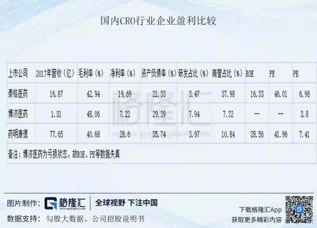 (虽然泰格医药和博济医药、药明康德并非直接的竞争对手,但相互比较一下,大体可以看出CRO行业的基本特征:
