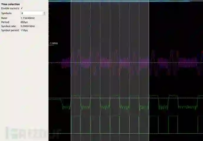 我们先得到胎压的数据NRZ速率为9.08k,数据如果采用曼彻斯特或者类似编码的话速率要除于2,得到速率为4.5K。
