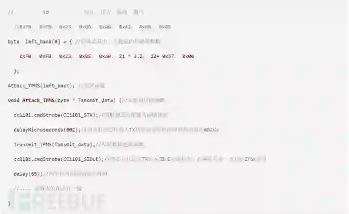 left_back这个数组里面存着的就是待发射的数据,CRC通过Transmit_TPMS自动算出来附加到数组结尾。我们接下来看看Transmit_TPMS发射数据操作函数。