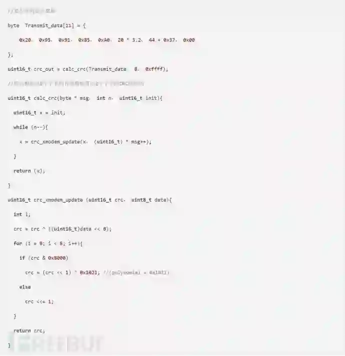 这个就是算出结尾两个字节校验码的代码,接收端会先判断这两个字节的校验码,如果是不对,接收端是不会去响应的。