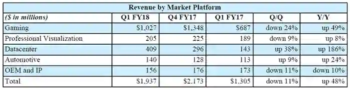 不过,虽然这些 GPU 在游戏和其他图像密集型应用中被广泛使用,但是从英伟达近年来的财报可以看出,数据中心的业绩虽然增幅很大,但从GPU在人工智能领域的整体情况来看,并不是非常理想。