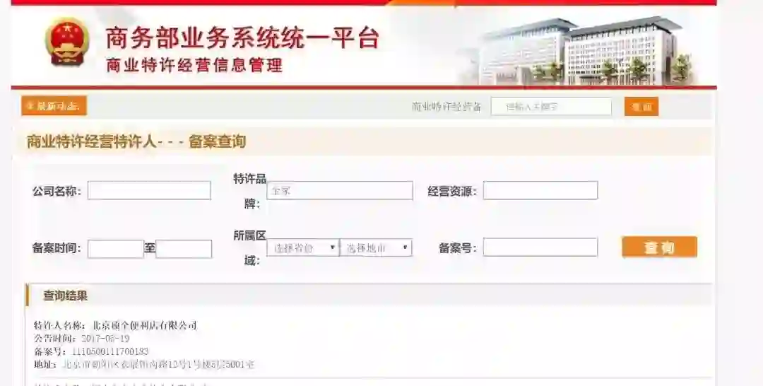 直接查商业特许经营信息即可,记得找链接里面带gov(政府机关)的网站。