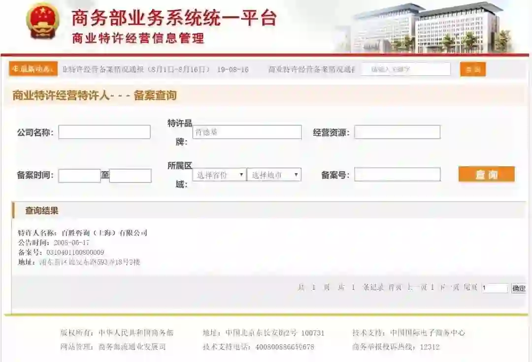 这个网站非常好用,可以有效帮助你识别某个品牌的所谓加盟,到底是不是经过商务部备案的,如果没有备案,那么还是建议多留几个心眼。