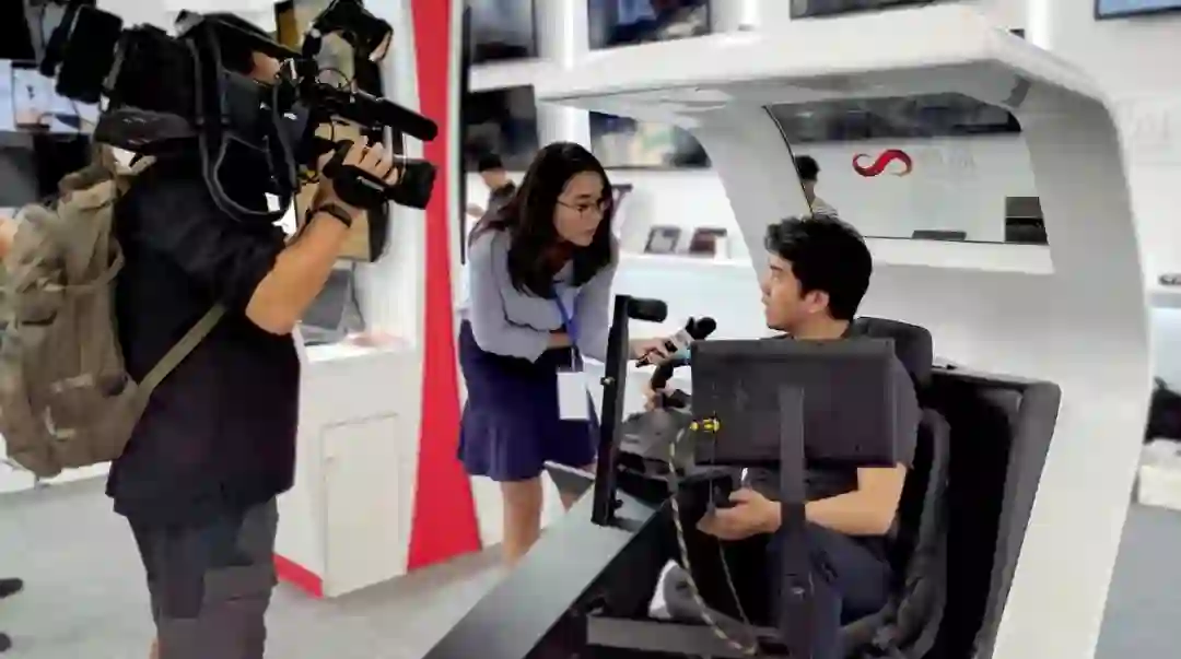 商汤搭建了模型驾驶舱,应用行人车辆检测、交通指示牌识别、车道识别技术,在展会现场就能体验无人驾驶,不用排长长的队、冒着炎热体验无人车,是不是很爽?