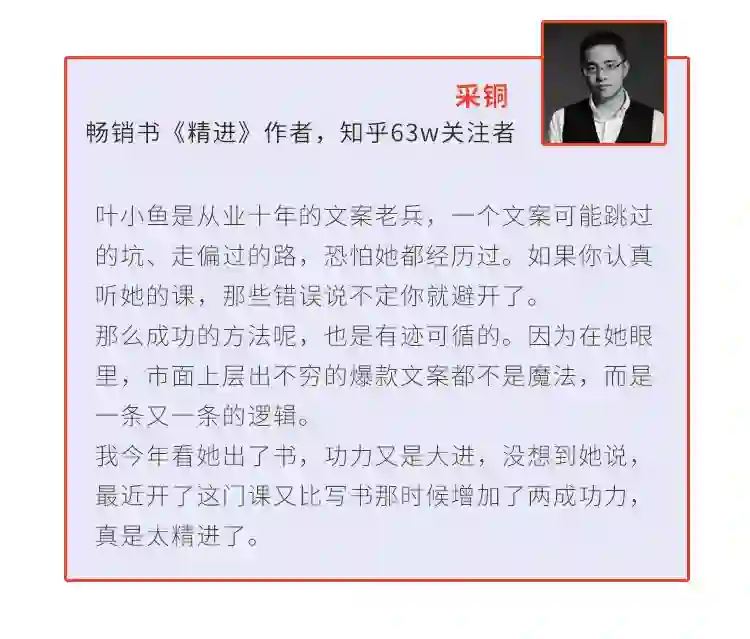 你逐步掌握: 文案的底层逻辑、标题/内容/结尾的写法/、销售文案的写法、品牌文案的写法、文案传播的要素等