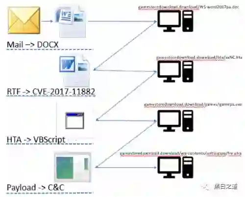 下面详细介绍实际的开发链,并依赖大量资源,如DOCX,RTF,HTA,VBScript和PowerShell。