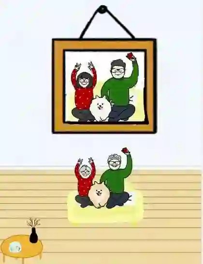 突然间,朋友圈被一张张有狗有猫的全家福霸了屏,这件事完全出乎张思川的意料。人们分享的这些全家福由各种卡通元素拼贴组成,其中包括了大人、小孩、宠物以及简单的家居设计等等。