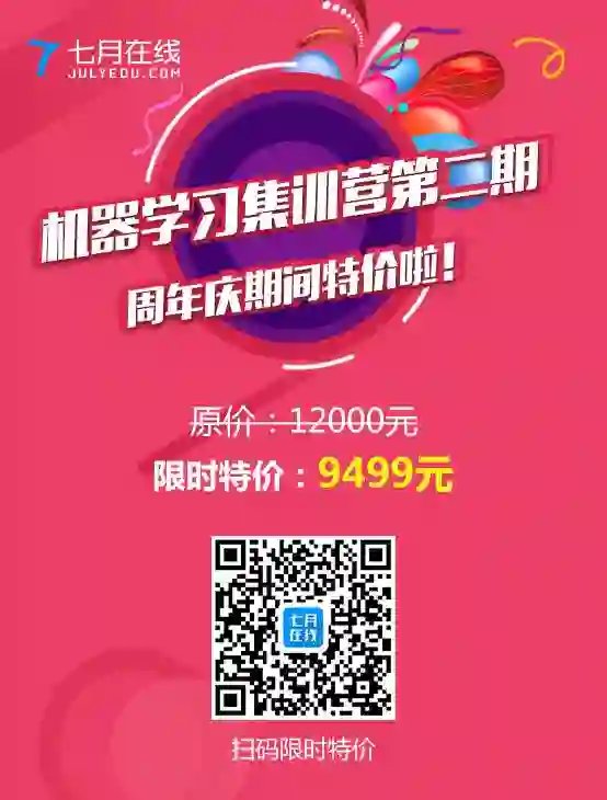 今年7月份「机器学习集训营」第一期开营,50个名额一抢而空,应错过第一期集训营广大学员的强烈要求,在周年庆之际推出第二期集训营,第二期在第一期的基础上强力改进,继续沿用第一期线上线下相结合的授课方式,加强项目实训的同时引入线下BAT专家面对面、手把手教学方式。依然突出BAT级工业项目实战辅导 + 一对一面试求职辅导,且继续提供3个月的GPU云实验平台供免费使用,更精讲面试常见考点。