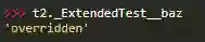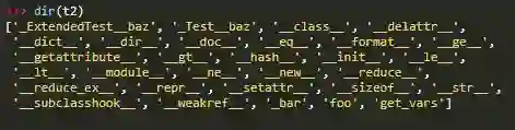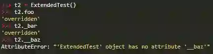 现在,你认为foo,_bar和__baz的值会出现在这个ExtendedTest类的实例上吗? 我们来看一看: