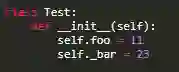 如果你实例化此类,并尝试访问在__init__构造函数中定义的foo和_bar属性,会发生什么情况? 让我们来看看: