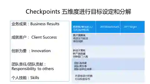 所以KPI中的目标分解很重要,全公司KPI要保持一致性与对齐。我们看看IBM最新的五维度KPI设置,他们是如何保证公司的KPI分解到每个部门和每个人的,下面就是一个很好的参考: