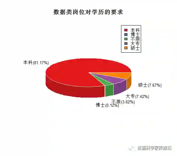 很明显,对于数据类岗位而言,本科学历要求是目前主流,硕士和专科学历也有一定比例,部分不限学历的岗位那一定是看重你的行业经验了,只有极少量的岗位是需要博士学历的,我们查询下数据便知:
