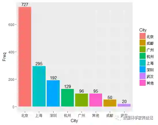"City")+geom_text(aes(label=Freq),hjust=0.5,vjust=-0.3)