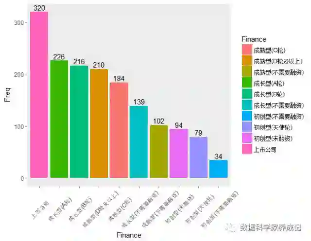 "Finance")+geom_text(aes(label=Freq),hjust=0.5,vjust=-0.3)+theme(axis.text.x =