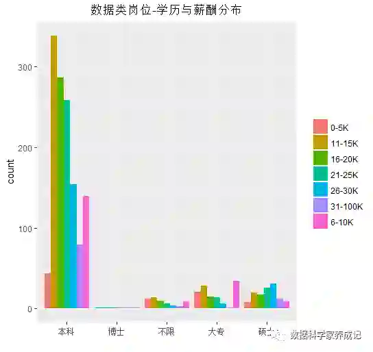 ggtitle("数据类岗位-学历与薪酬分布") +
