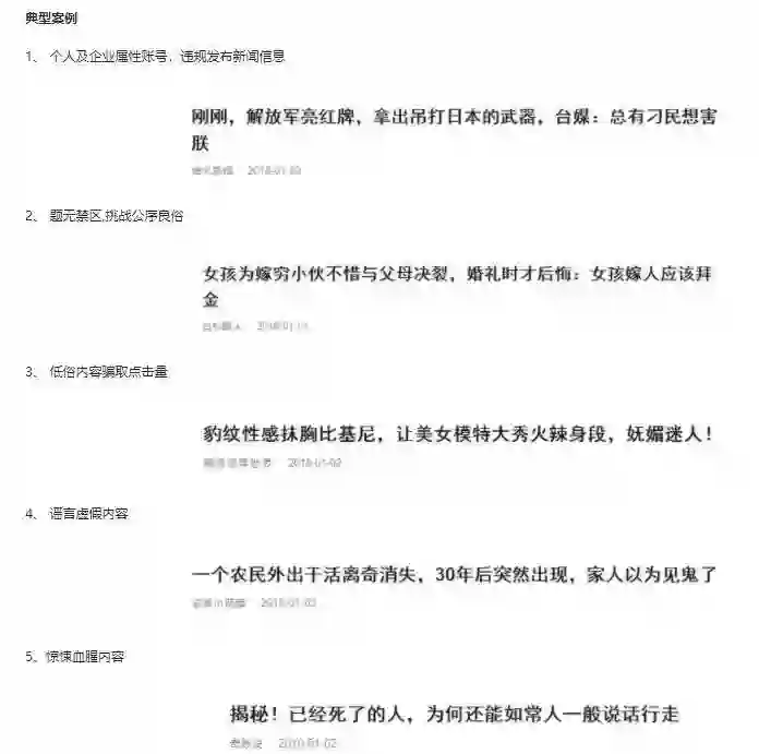 比如:低俗、色情、虚假、标题党、抄袭等等。尤其是娱乐八卦相关的低俗信息,被整治的力度更是日益增强。