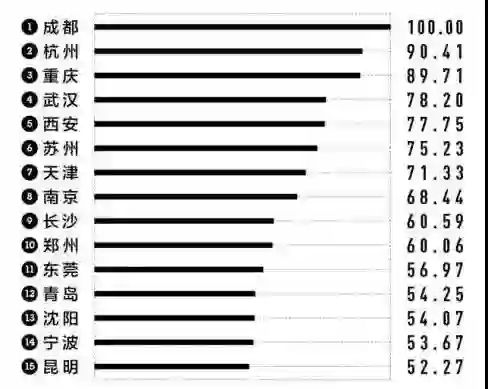 但总体而言,成都的魅力还是相当之可观,2016 年,成都跻身成国家中心城市。最近,第一财经发布《城市商业魅力排行榜》,成都连续四年名列新一线城市之首。