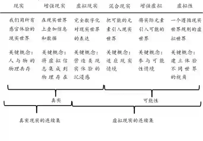 无论AR、VR还是MR,其背后所支持的,都是随着计算机技术不断发展而更新的 “虚拟观”。Mana Farshid等基于后现代主义哲学家Deleuze对现实的哲学思辨,提出了一个“真实现实、虚拟现实连续集”[6],如图1所示。