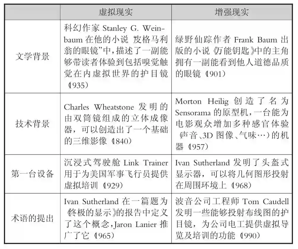 表1所展示的为虚拟现实、增强现实技术发展的历史关键节点,这两种沉浸式技术从文学构想到现今流行于大众,经历了百年的发展史。我们从历史发展的维度可以看出,虚拟现实侧重于对现实情境的仿真、模拟;增强现实更注重利用技术延伸人类对于现实环境的感知,来打破现实的“局限”。因此,准确认识两种技术的发展历程,是构建扩展现实技术概念的必经之路。