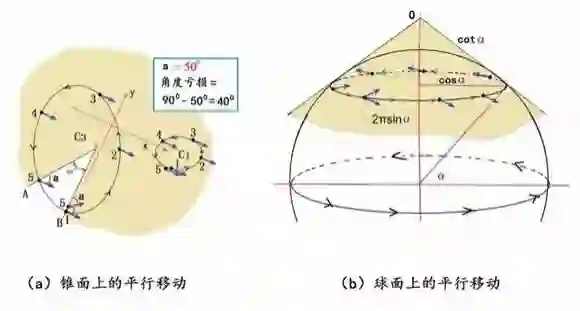 图6:锥面和球面上的平行移动