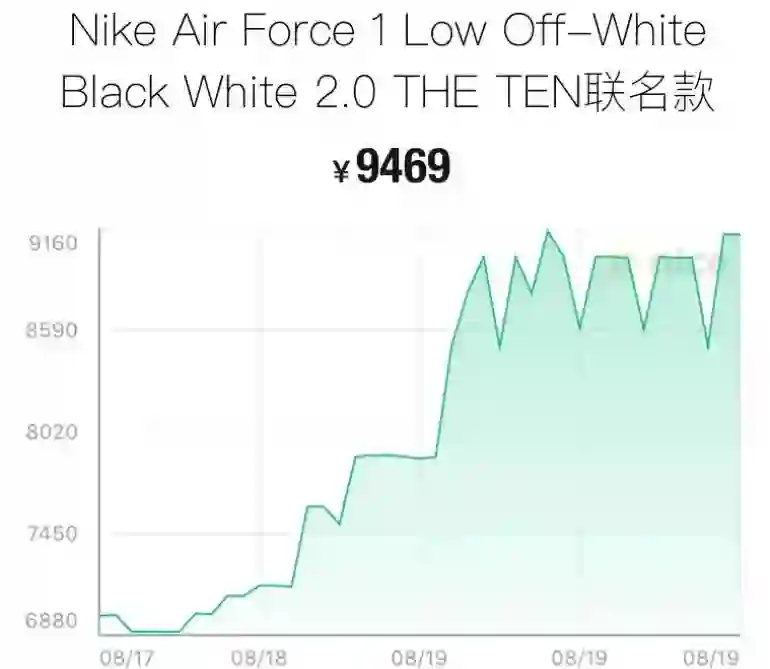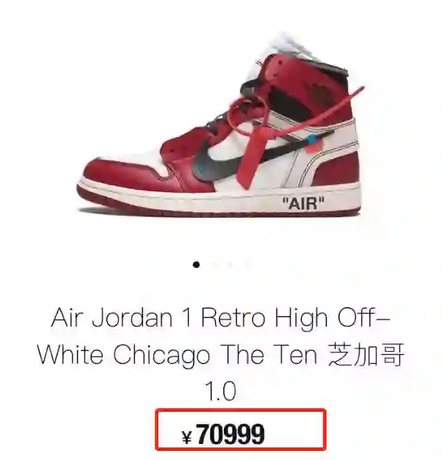 举个例子,AJ1 x OW芝加哥,从8000涨到1万,再到2万,还没封顶,现在已经炒到5万,黄金码甚至7万,简直比炒股还刺激。
