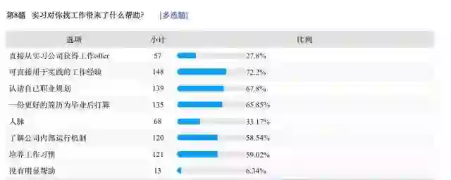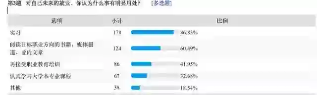 (图说:36氪联合实习僧发布的毕业生职业调查问卷显示,实习对就业的帮助尤为重要。)
