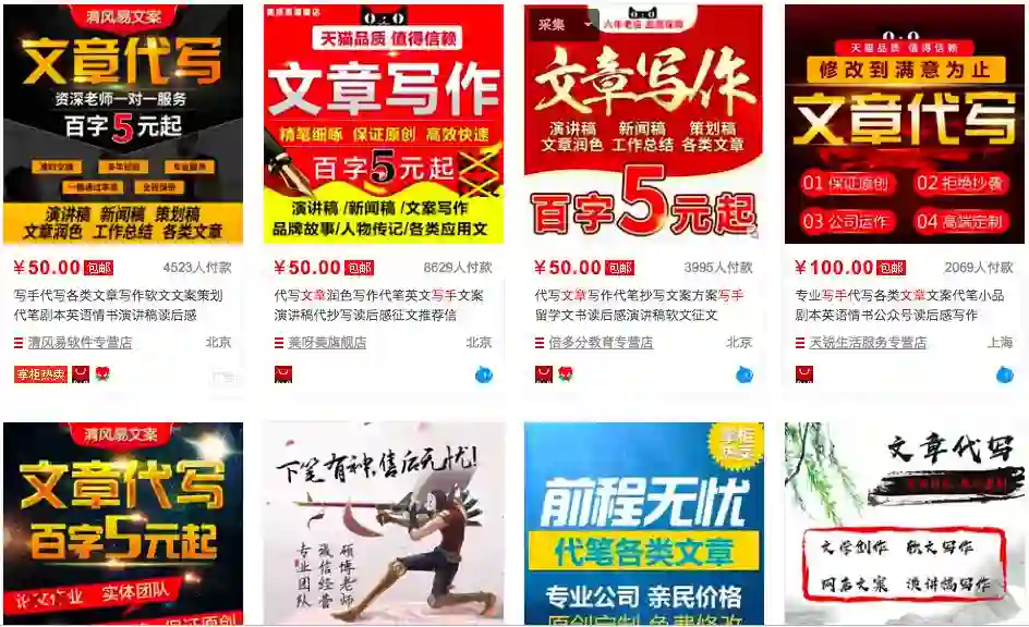 然而奇怪的正是,这些文章还篇篇10万+。这很可能就是背后的“做号党”,他们往往是一个形成团队的机构,猎云网在淘宝上搜索文章写手,里面充斥着大量代写商家,订单非常高。
