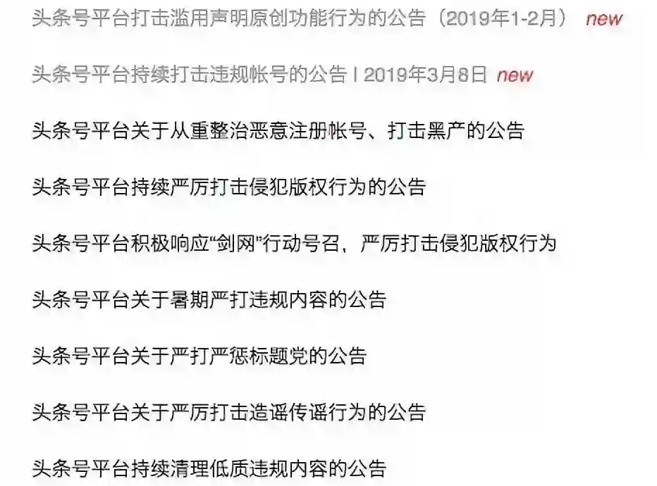 (以下为头条号处罚公示)