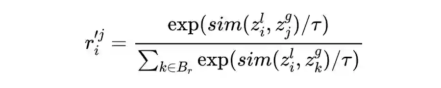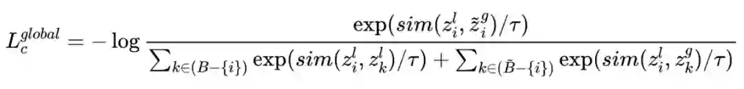 除了局部的损失函数外,作者也引入了全局的损失函数。其出发点为:局部模型不但要从自己独立的样本中来学习分布,自然也要从全局模型中学习信息,所以在全局上提出了与局部损失类似的全局损失函数。唯一的差别在于,全局损失函数的关系损失函数中,随机采样的负样本的表示向量从全局模型中取得(从作者的代码中可以发现,此时全局模型的参数是冻结的,只用于提供特征向量)。