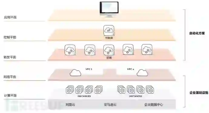 1、控制器通过VPN容器API接口完成IPSec连接配置,使用云服务商API接口完成VPC路由配置,从而实现了自动化。这种设计的优势在于可以消除复杂度,不需要网络工程师,任何人都可以运行。