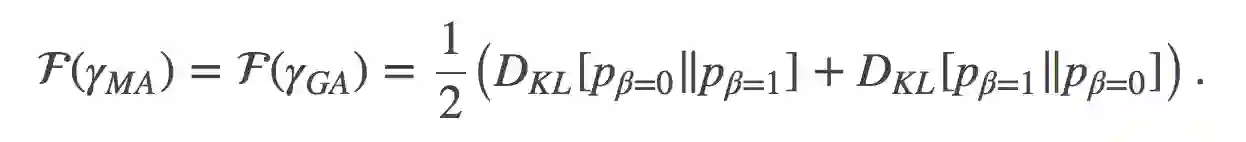 有意思的是, 如果在分布空间中沿着两条非常不同的路径计算F(γ)(自然参数空间中的一条直线或者时间空间中的一条直线), 你会得到完全相同的值。尽管这些路径明显的有着不同的分布, 正如文章中图1所描绘的。