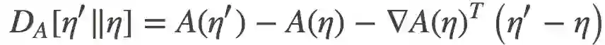 其中是log分割函数。由于A是一个关于η的凸函数, 我们就可以在以(凸)log分割函数A诱导的自然参数η作为坐标系统来定义 Bregman 散度: