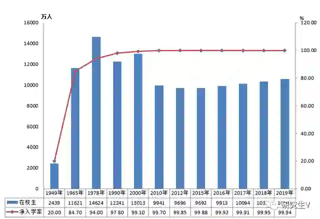 普通小学16.01万所,比上年减少0.17万所,下降1.03%。另有小学教学点9.65万个,比上年减少0.49万个。招生1869.04万人,比上年增加1.74万人,增长0.09%;在校生10561.24万人,比上年增加221.98万人,增长2.15%;毕业生1647.90万人,比上年增加31.41万人,增长1.94%。小学学龄儿童净入学率[6]99.94%。