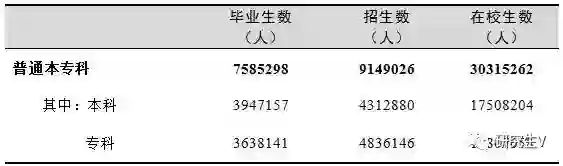 普通本专科招生914.90万人,比上年增加123.91万人,增长15.67%;在校生3031.53万人,比上年增加200.49万人,增长7.08%;毕业生758.53万人,比上年增加5.22万人,增长0.69%。另有五年制高职转入专科招生46.00万人;专科起点本科招生31.75万人。