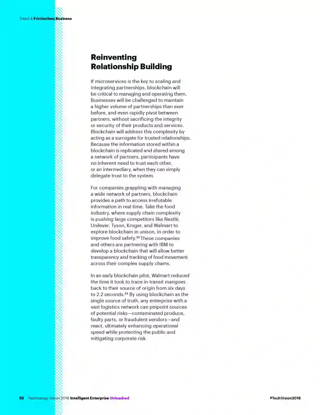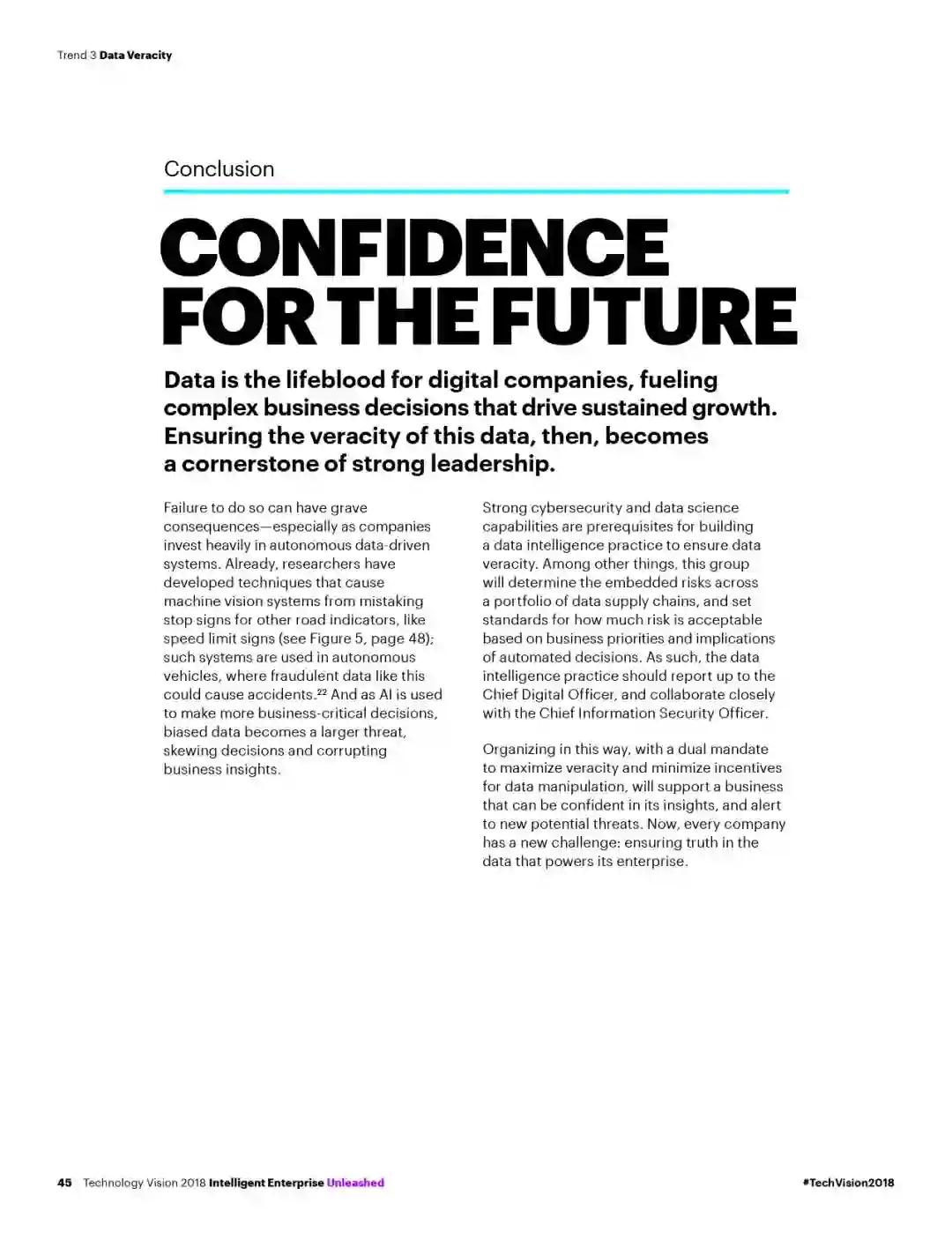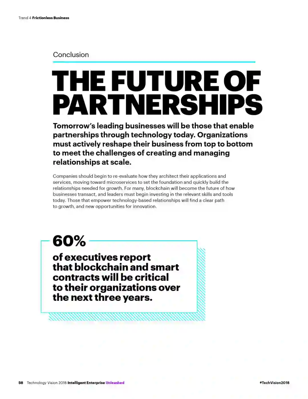 本年度《技术展望》报告的主题为“智能企业:共建新契约,共赢无边界”。报告指出,AI、先进的数据分析和云计算等新技术的迅猛发展,不仅使得企业能打造出创新的产品与服务,也进一步改变了人们工作和生活方式。随之而来,技术的发展也正在转变企业与客户、商业伙伴之间的关系。