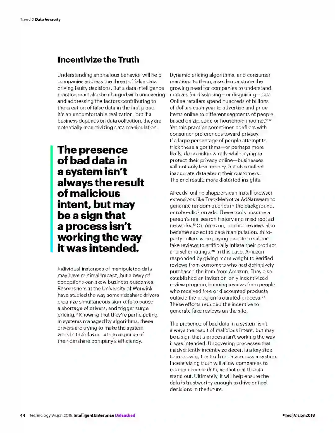 真数据:企业运营基于数据驱动。不准确、被操纵和片面的数据将成为企业的新软肋。忽视数据真实会严重损害商业洞察力,产生重大决策偏差。为了应对这一挑战,企业必须双管齐下,着力提高数据准确性,同时尽量避免操纵数据。