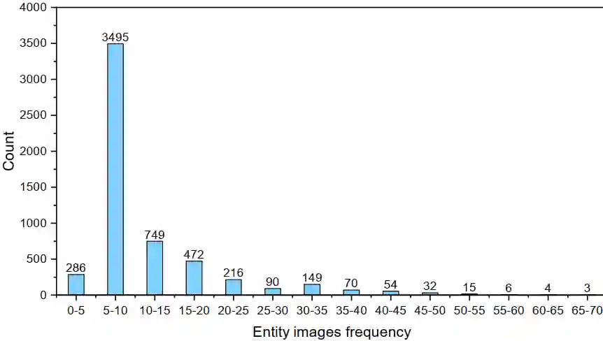 数据收集:与一般的文本知识图谱不同,OpenRichpedia的出发点是构造一个多模态知识图谱,其中包含了全面的图像实体及图像实体之间的关系。但是,如下图所示,文本知识图谱实体对应的图像资源有存在长尾分布的问题,平均每一个文本实体在Wikipedia中只有很少的视觉信息。因此,我们考虑借助外部来源来填充OpenRichpedia的图像实体。首先我们基于现有的传统文本实体,从维基百科,谷歌,必应和雅虎四大图像搜索引擎中获取相应的图像实体,每一个图像作为知识图谱中的一个实体存储于OpenRichpedia中。Wikidata已经为每个文本知识图谱实体定义了唯一的统一资源标识符,我们将这些统一资源标识符添加到OpenRichpedia作为文本知识图谱实体。在目前的版本中,我们主要收集了30,638个关于城市、景点和名人的实体。对于图像实体,我们可以直观地从Wikipedia上收集图像,然后在OpenRichpedia中创建相应的统一资源标识符。