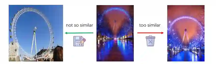图像处理:在数据收集完成后,需要对图像实体进行预处理和筛选。因为我们的数据来自开放资源,搜索引擎会基于数据与查询字段的相关性评分对其进行排名。以多模态知识图谱的角度而言,文本知识图谱实体所关联的图像实体需要满足高相关性和多样性的条件。如下图所示,对于中间的图像实体,右侧的图像实体因为较高的相似性从而被系统过滤掉,保留左侧相似性较低的图像实体。因为从搜索引擎中获取的图像实体难免存在重复问题,接下来通过一系列的预处理操作,使得每个图像实体都与相应的传统文本实体具有较高的相关度。其中预处理操作包括去噪操作和多样性检测,去噪操作的目的是去除不相关的图像实体,多样性检测的目的是使得图像实体具有尽可能高的多样性。