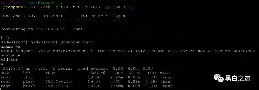 MidLAMP ip: 192.168.3.19 为目标linux机器,即icmp跳板机