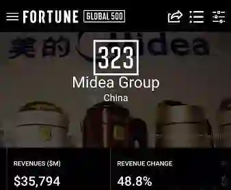 美的集团以国产家电企业之姿赫然上榜,排名较上年也有大幅提升,从2017年的450位跃升至今年的323位,一下子甩开127家世界500强。
