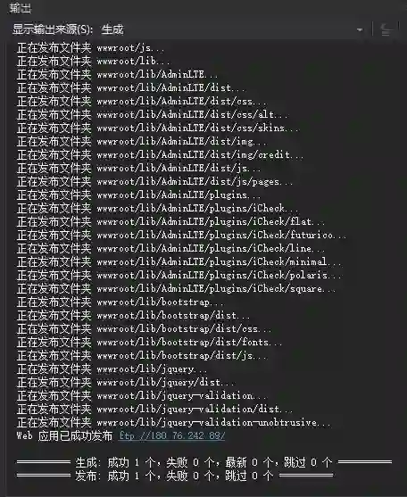 这样我们就已经配置好本地一键发布站点到远程服务器了。以后直接点发布按钮,就可以看到自动将生成的发布文件,同步到网站服务器: