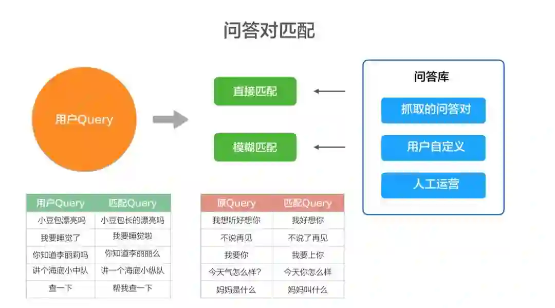 所以其实就是这种模糊匹配的技术,我们还是投入了蛮大经历去做,就是用户的 query 是这样的,那我们匹配的 query 比如小豆包漂亮吗?小豆包长的漂亮吗?我们希望它们是一个意思。这样的话,当有多少人工有多少智能的时候,可能快速的去做泛化。