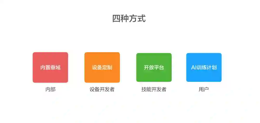 2.我们会把这个能力开放给设备开发者,包括我们自己的设备,譬如在手机上说打开手电筒,就是设备所独有的,它不是一种通用能力。譬如说一个电视,连接 HDMI ,我们相信小爱同学自己是做不了的,所以我们就把这个能力开放出来,交给设备开发者,由他们自己去定义。