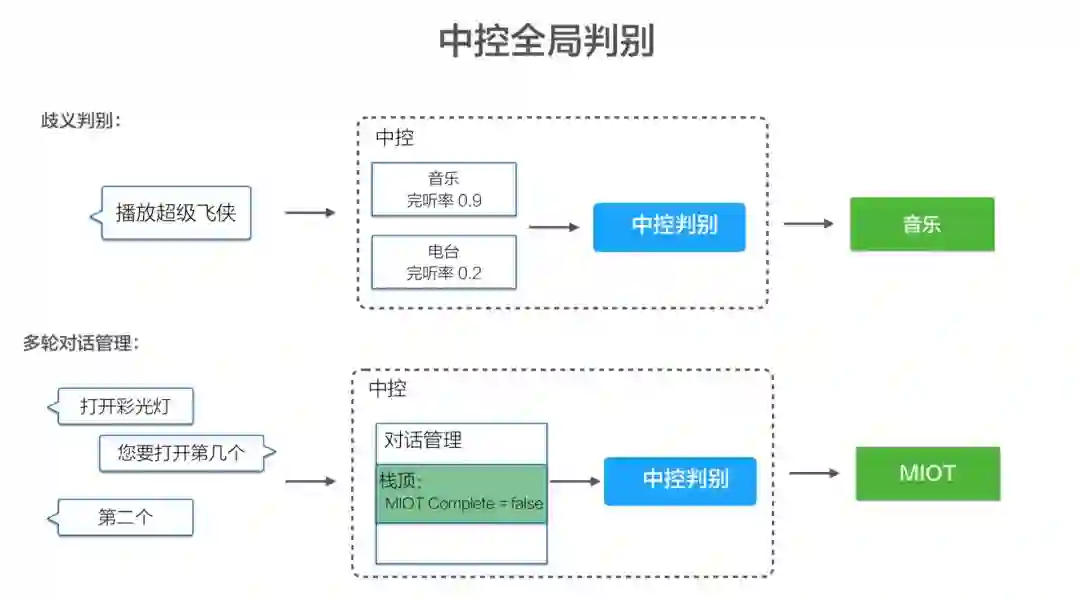 我们就发现中控全局判别这件事越做越复杂。譬如,北京天气怎么样?翻译“北京天气怎么样”?对于天气而言的话,它就发现它前面多了两个词,它也不认识翻译,因为对于每一个垂域来讲,它都是局部的信息,很难去知道全局性的,它前面多了个翻译,自己的转换就不管了。