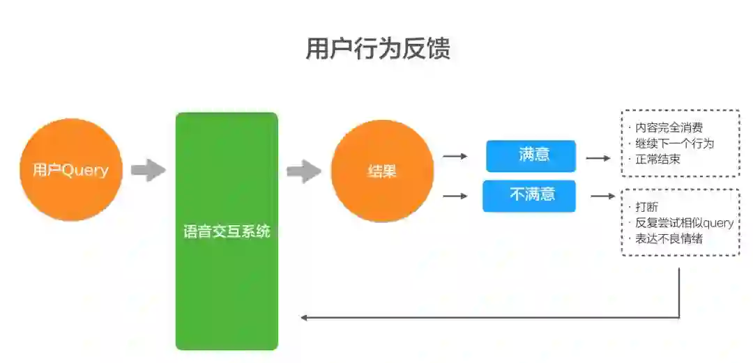 现在用户对结果的满意和不满意,在搜索里面是非常直接的。我跳过这个结果,可能就表示对这个结果就不喜欢,但在语音对话里,就像我们正常的对话里,我可能跟你聊了两句话不投机,但我可能还是比如说嬉皮笑脸的就走了,你可能都不知道我到底对你的话投不投机。