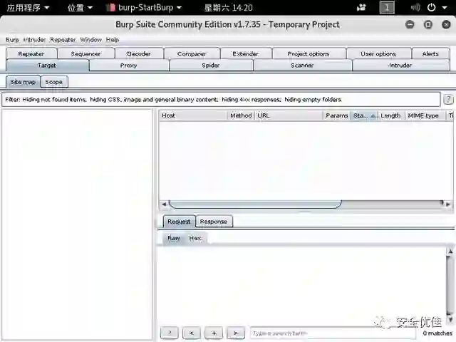 当Burp Suite 运行后,Burp Proxy 开起默认的8080 端口作为本地代理接口。通过置一个web 浏览器使用其代理服务器,所有的网站流量可以被拦截,查看和修改。默认情况下,对非媒体资源的请求将被拦截并显示(可以通过Burp Proxy 选项里的options 选项修改默认值)。对所有通过Burp Proxy 网站流量使用预设的方案进行分析,然后纳入到目标站点地图中,来勾勒出一张包含访问的应用程序的内容和功能的画面。在Burp Suite 专业版中,默认情况下,Burp Scanner是被动地分析所有的请求来确定一系列的安全漏洞。