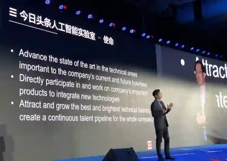 今日头条看到了人才的重要,所以成立了人工智能实验室,我们有三个使命: