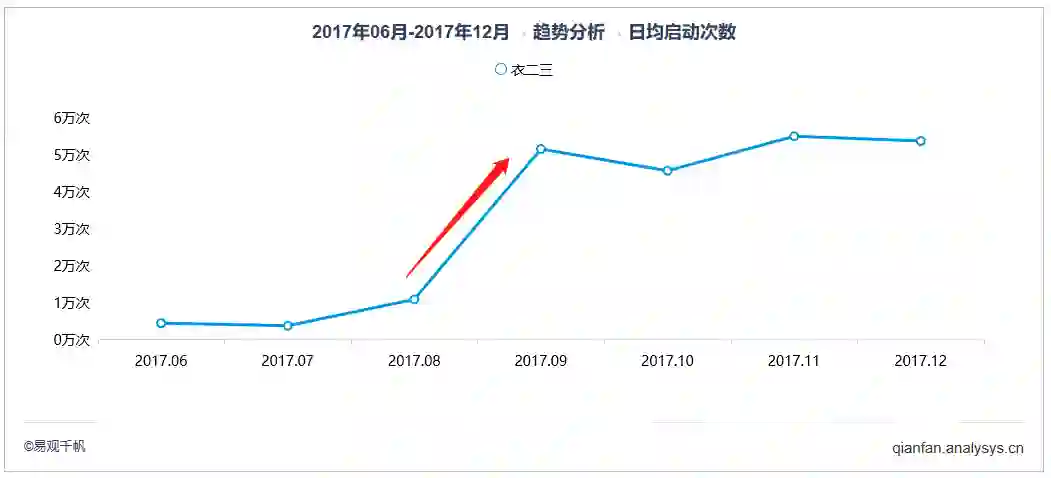 易观千帆数据显示,2017年6月至7月,衣二三活跃用户环比出现较大增长,其中7月环比增长88.0%,足见这次合作对衣二三用户的拉动作用。