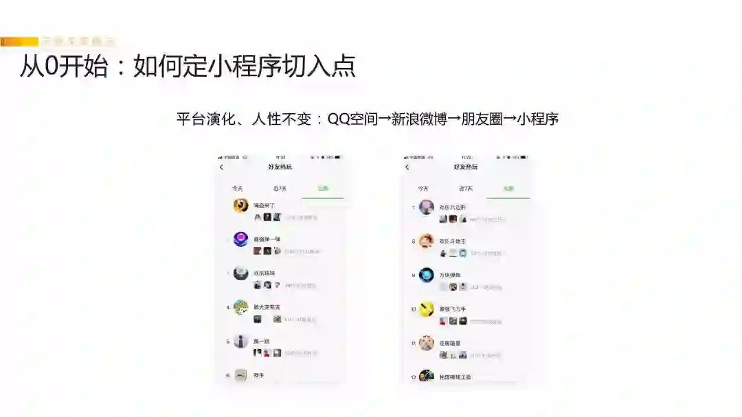 所以如果你曾经在别的平台体验过很好玩、或很火的小产品,都非常适合借鉴。用最亮眼的功能结合自己的微创新,快速制作成小程序形态(像素级的抄袭对自己的成长没有好处)。